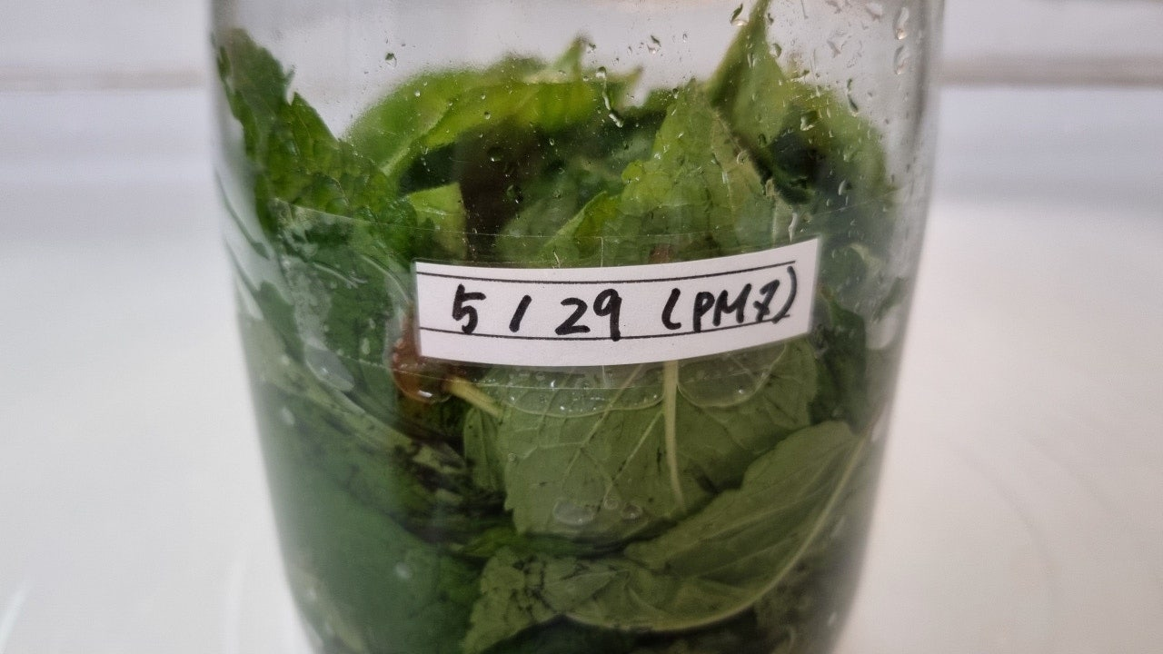 스피어민트 잎을 손으로 잘 조물조물해 줍니다.