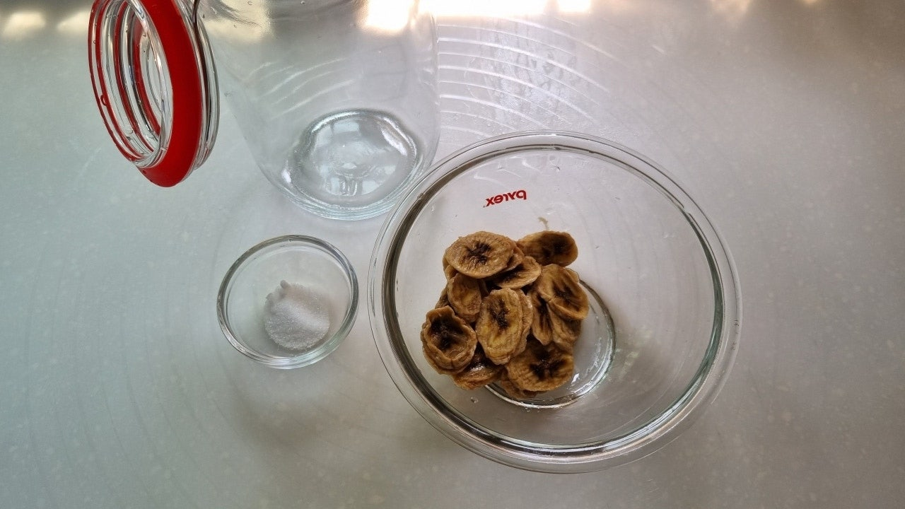 🔸건조 바나나, 설탕, 미온수, 유리병